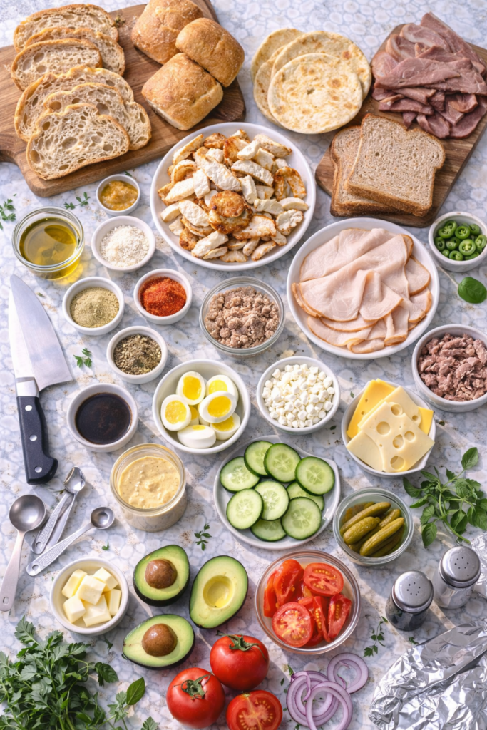 The beauty of sandwiches is that the ingredients change based on what you’re making. But here’s what you’ll need across these recipes: