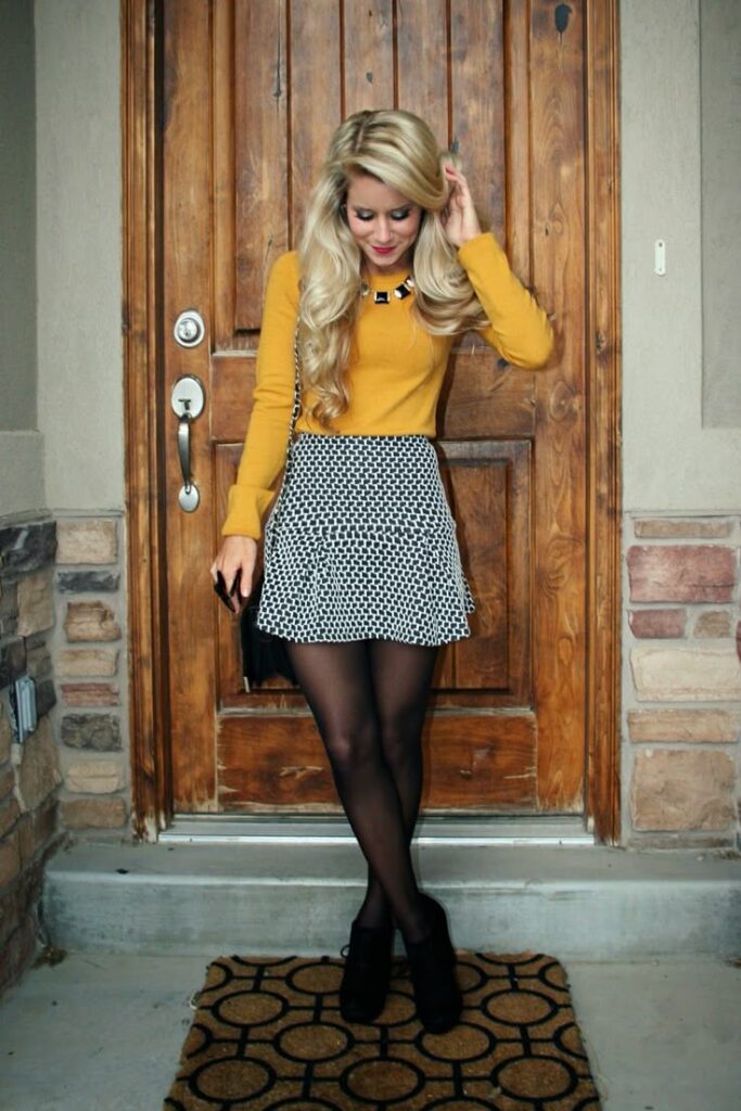 Wear a cream cashmere sweater with a pleated midi skirt in autumnal shades like rust or mustard. Complete the look with knee-high suede boots.