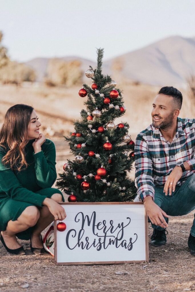 Small props like mugs of hot cocoa, Christmas ornaments, or fairy lights can add a playful and warm touch.