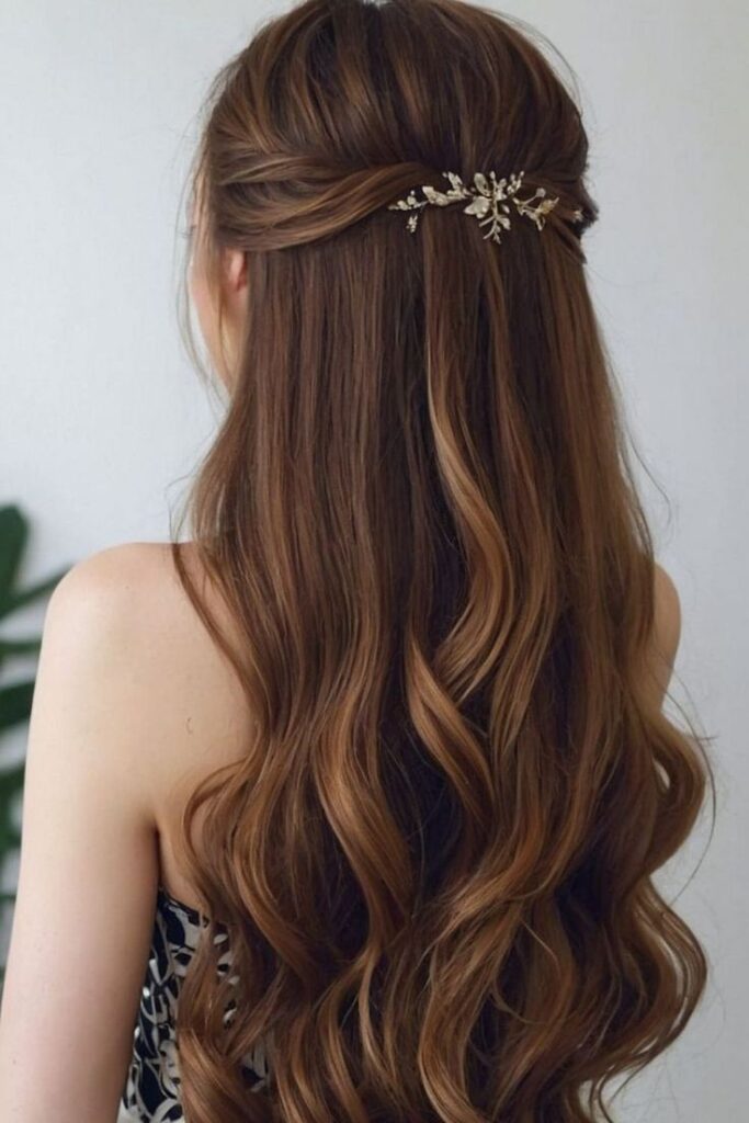 This hairstyle combines the best of both worlds—partially tied hair with the rest left flowing.