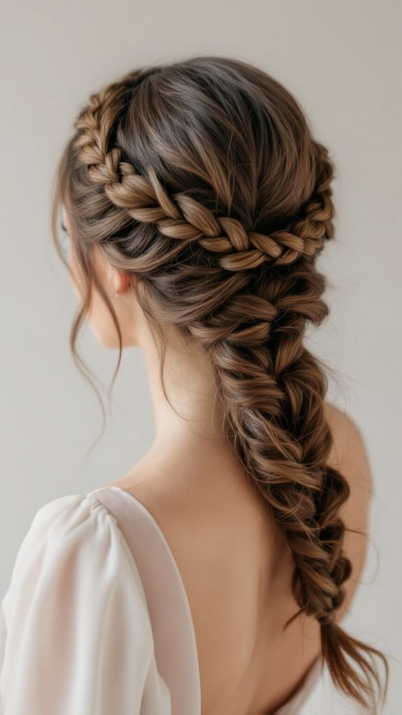 Braids symbolize tradition and beauty, making a braided crown hairstyle perfect for weddings.