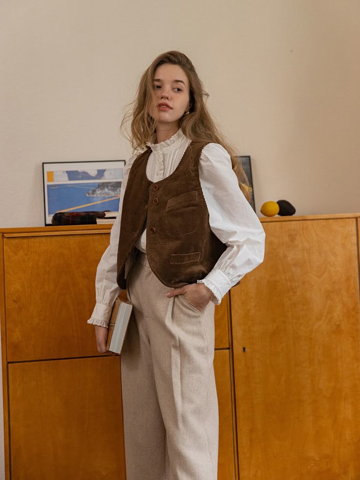 1. With Button-Down Shirts: The classic preppy style—pair a knitted vest over a crisp white shirt.
