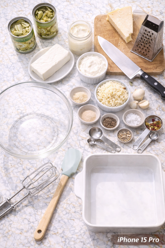 1. Drain the artichoke hearts aggressively. Press them in a clean kitchen towel or between layers of paper towels after draining. Excess water makes the dip soupy, and nobody wants that.
