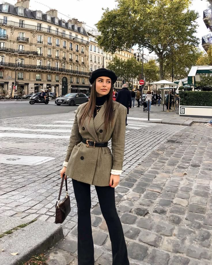 Think clean lines, monochrome palettes, and timeless pieces. Pair a beige turtleneck with tailored wool trousers and a camel coat. Add leather ankle boots for a sleek finish.