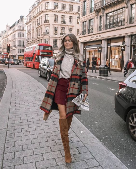 Inspired by countryside charm, this look features chunky sweaters, flowy skirts, and soft textures. Add lace-up boots and a plaid scarf for that whimsical touch.