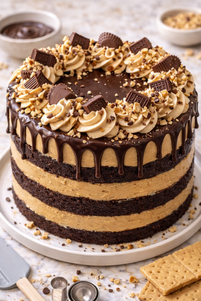 Rich, fudgy chocolate layers. Silky peanut butter frosting. A glossy chocolate ganache drip that makes it look like it came straight out of a bakery window. And the most shocking part? It’s not even that hard to make.