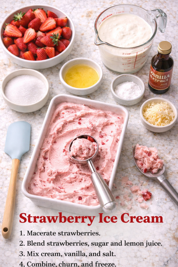 It’s usually pink, faintly fruity, and weirdly sweet. Not exactly what you signed up for. Real strawberry ice cream — the kind made with actual strawberries — tastes completely different. We’re talking deep, jammy, sun-ripened flavor in every single bite.