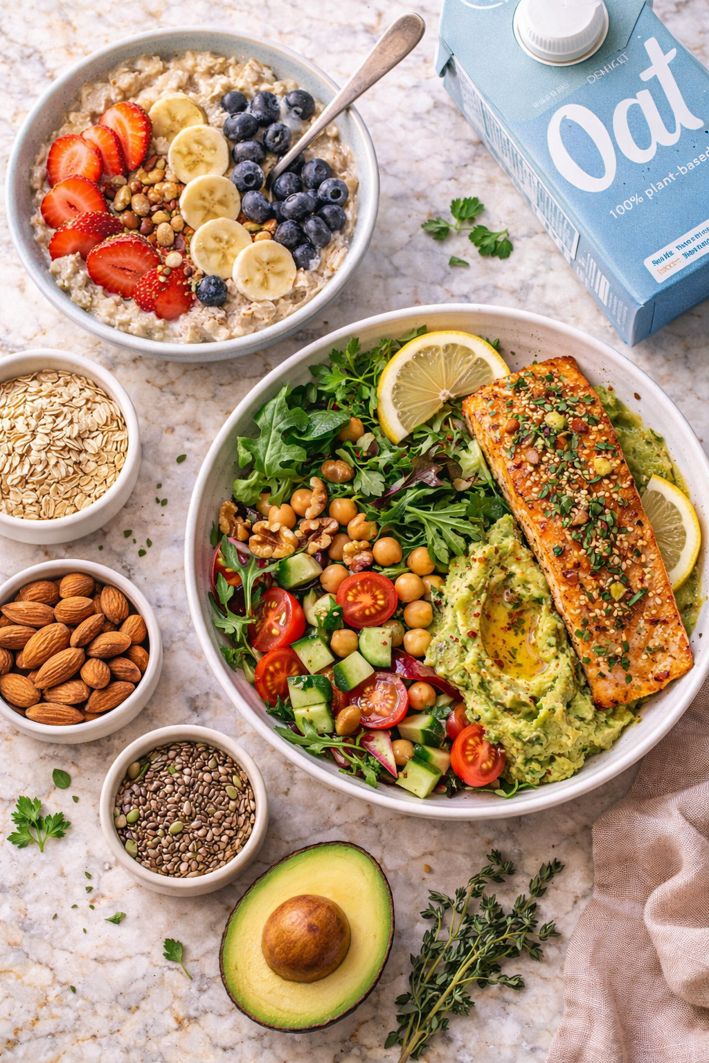 Soluble fiber binds to cholesterol in the digestive system and physically drags it out of the body. Meanwhile, monounsaturated fats from avocado and olive oil actively raise HDL (the “good” kind) while lowering LDL. This bowl hits both mechanisms at once.