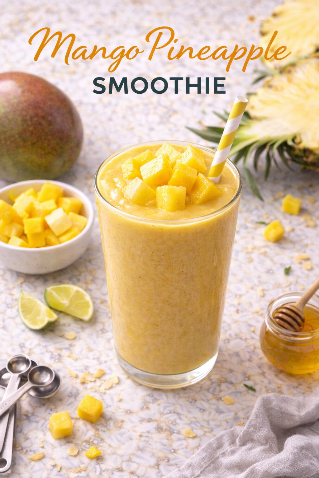 4. Fresh ginger is a game-changer. It adds this subtle little kick that balances out the sweetness from the mango and pineapple in the best way. Start with ½ teaspoon and adjust from there.