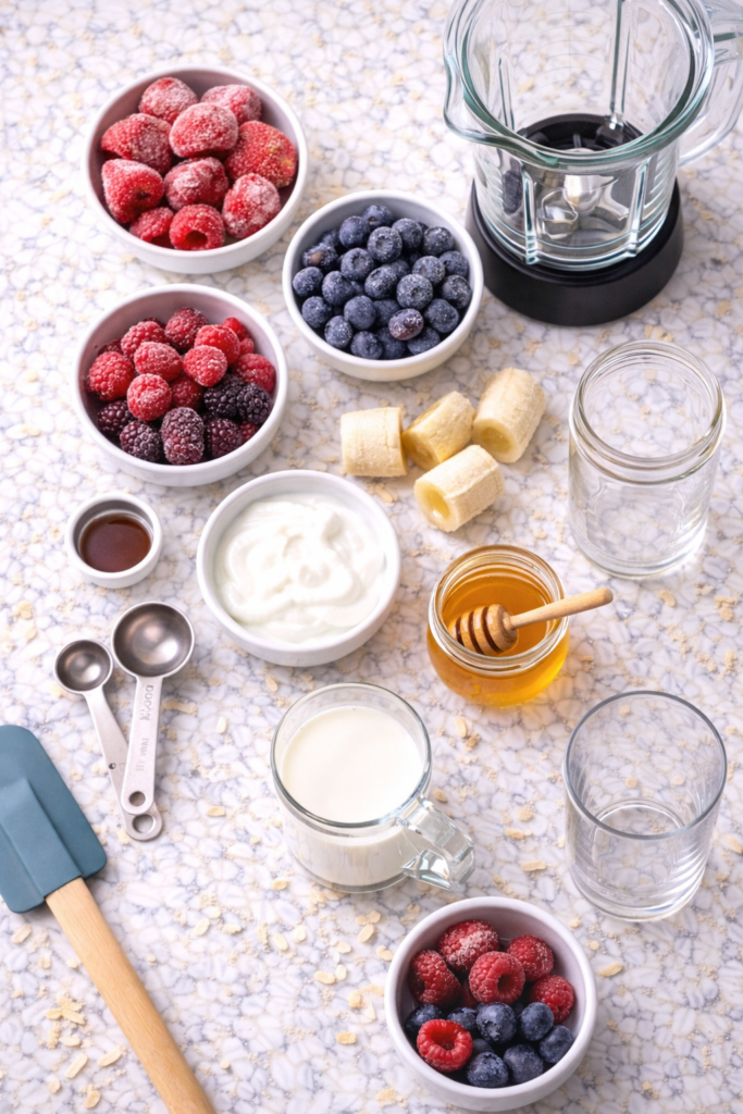It’s cold, thick, a little sweet, and packed with berries that honestly taste like summer even in the middle of January. And the fact that it takes five minutes from frozen to finished? That’s the kind of energy we’re working with here.