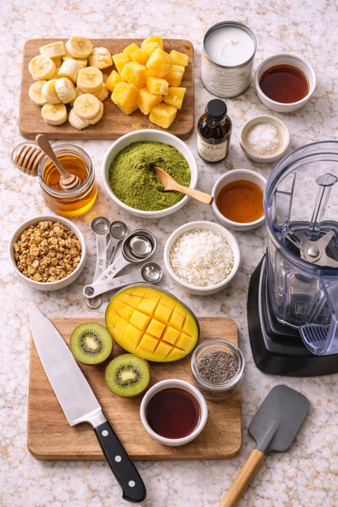 This sounds backward, but once the base is blended you’ll want to serve it fast. Getting the toppings ready first means no scrambling.