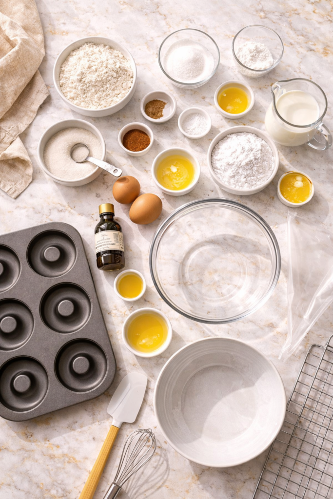Preheat your oven to 425°F (220°C). Grease your donut pan(s) very well with butter or non-stick spray. This step matters — donuts have a tendency to cling to the pan if it’s not properly coated.