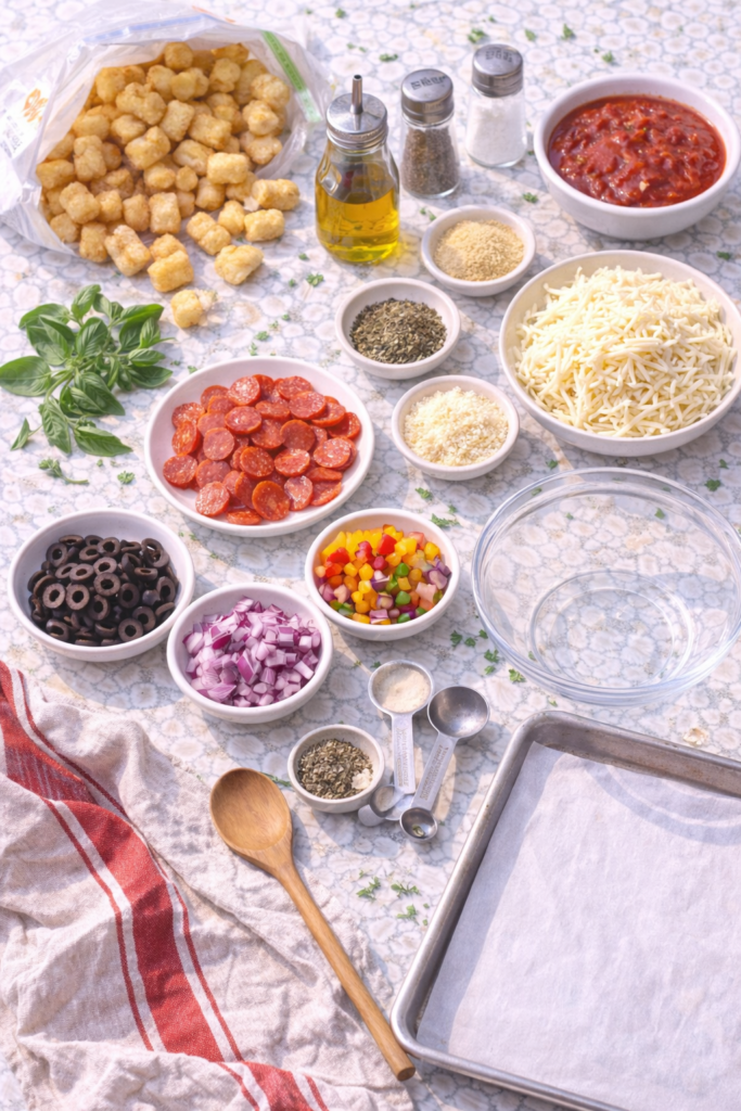 And here’s the thing: they’re stupid easy to make. You don’t need fancy cooking skills or a bunch of specialized equipment. Just a baking sheet, some tater tots, and pizza toppings you probably already have in your fridge.