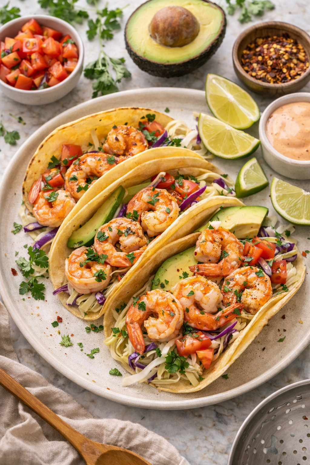 Can I make these tacos for a crowd? Easy. Double or triple the recipe and set everything out as a taco bar. The crema and slaw can be made ahead, and the shrimp cook fast in batches. People assemble their own, which is always a hit.
