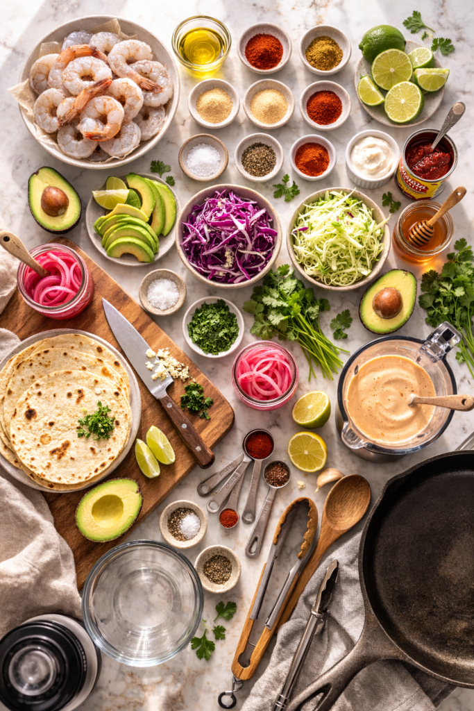 What size shrimp works best? Large or extra-large shrimp (16/20 count per pound) are ideal. They’re meaty enough to hold up in a taco and cook evenly without drying out.