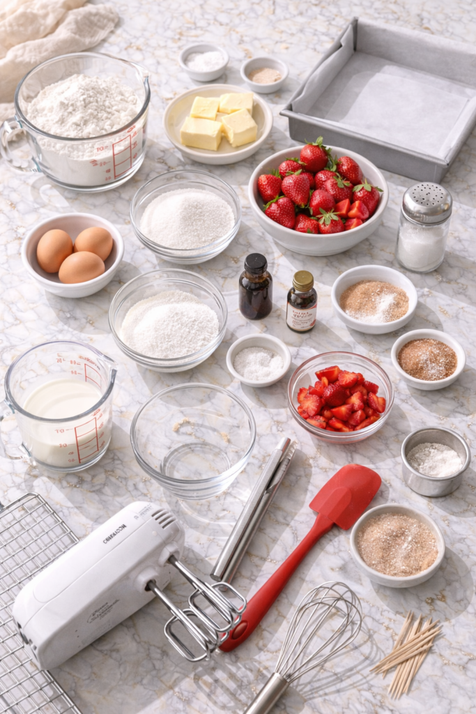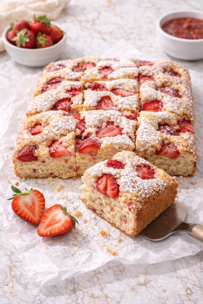 Soft, buttery, packed with fresh strawberries, and just sweet enough to feel like a treat without putting you in a sugar coma. The kind of cake you can eat at 2pm with tea and not feel weird about it.