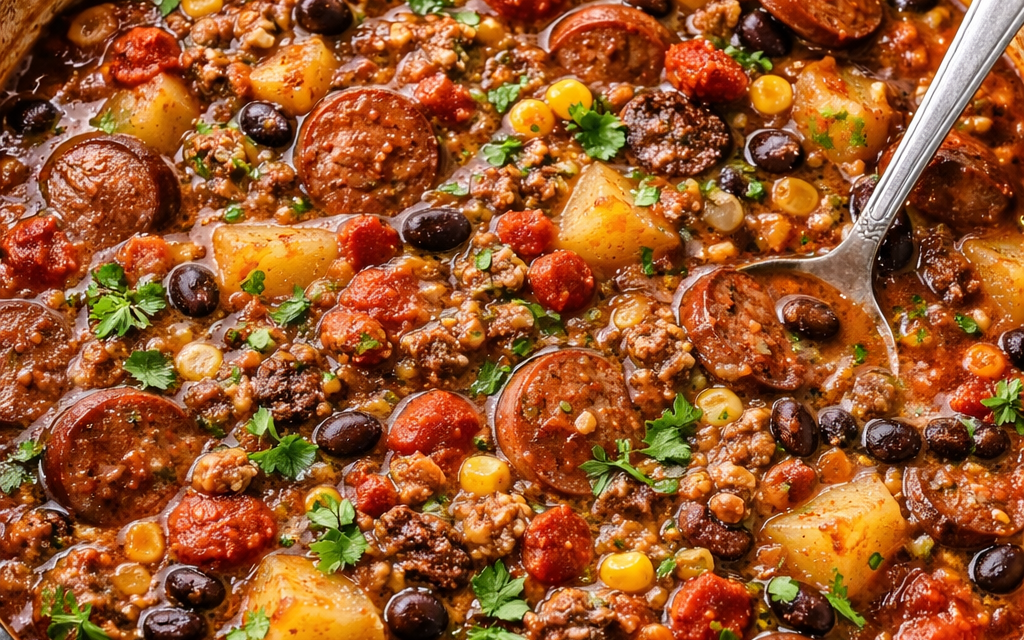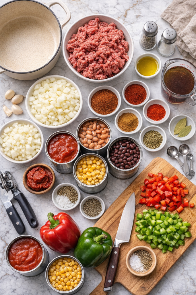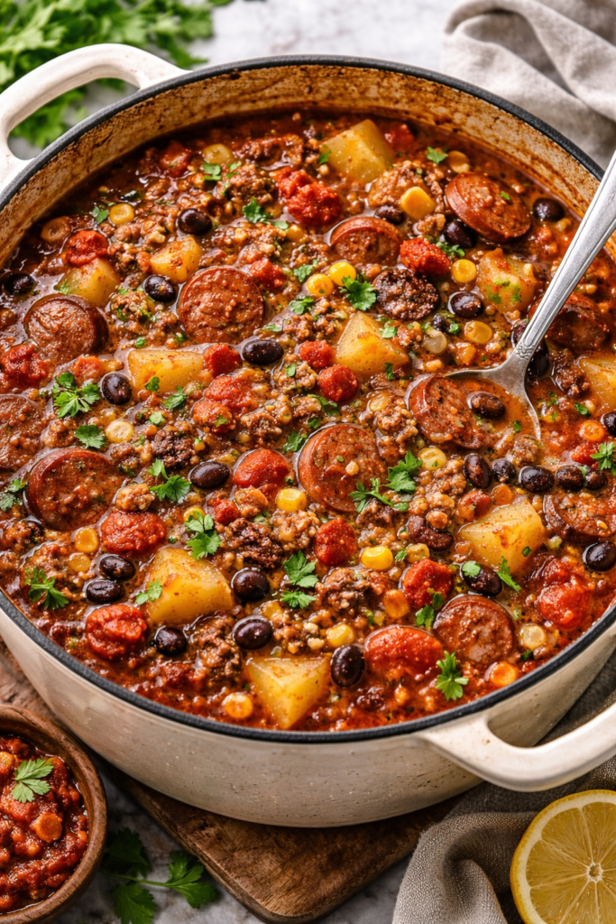 It’s packed with ground beef, beans, corn, tomatoes, and just enough spice to keep things interesting. And here’s the thing: you throw everything in one pot and let it do its thing.