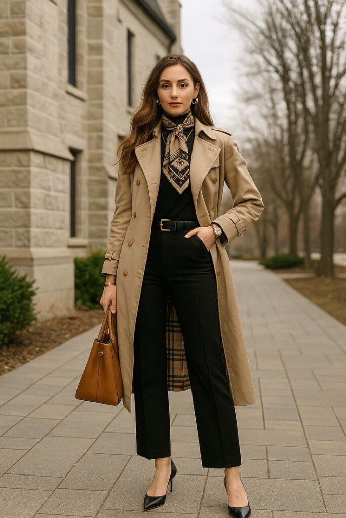 3. Outer Layer: Finish with an overcoat or trench for insulation.