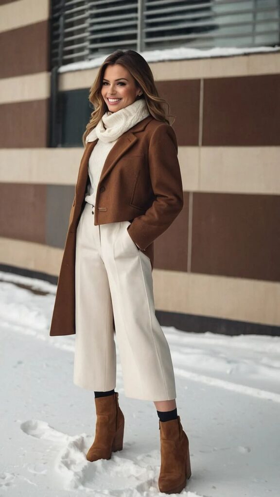 4. Elegant Trousers – High-waist, wide-leg, or straight-fit trousers in winter fabrics like wool blends.